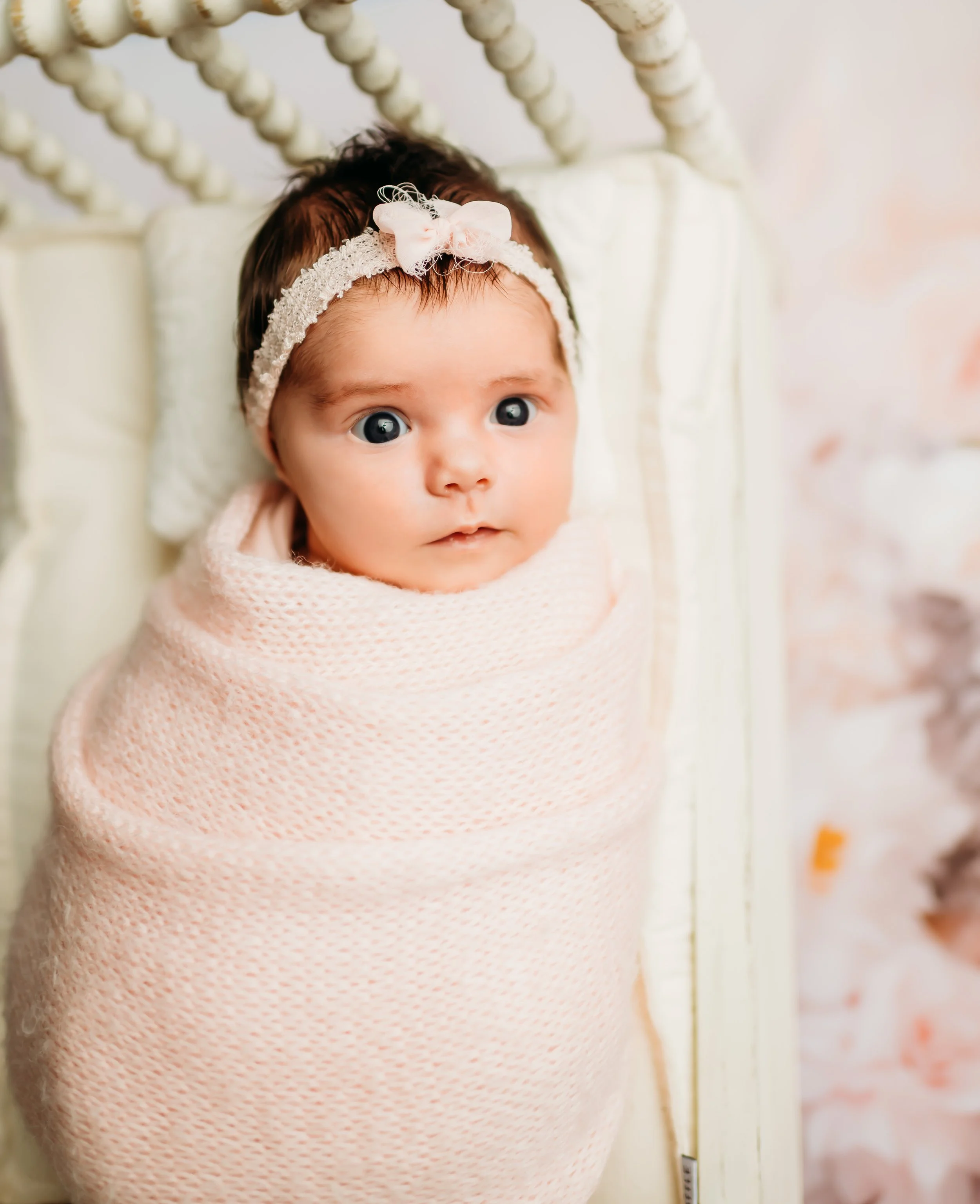 This sweet girl spent some time in the nicu before we got to take her sweet newborn portraits. I assured mama she can still bring her in and we will get some good photos. Sure enough she was so calm and excited to take photos in the warm cozy studio. She loved looking at the camera and the big studio light, very observant of everything and was so darn cute!